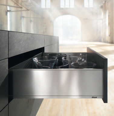 I profili sottili ed eleganti offrono la massima libertà di progettazione per un design dei cassetti che rispecchia il vostro gusto. Scegliete tra diversi colori e versioni: in metallo chiuso come LEGRABOX pure o con elemento inseribile come LEGRABOX free.
