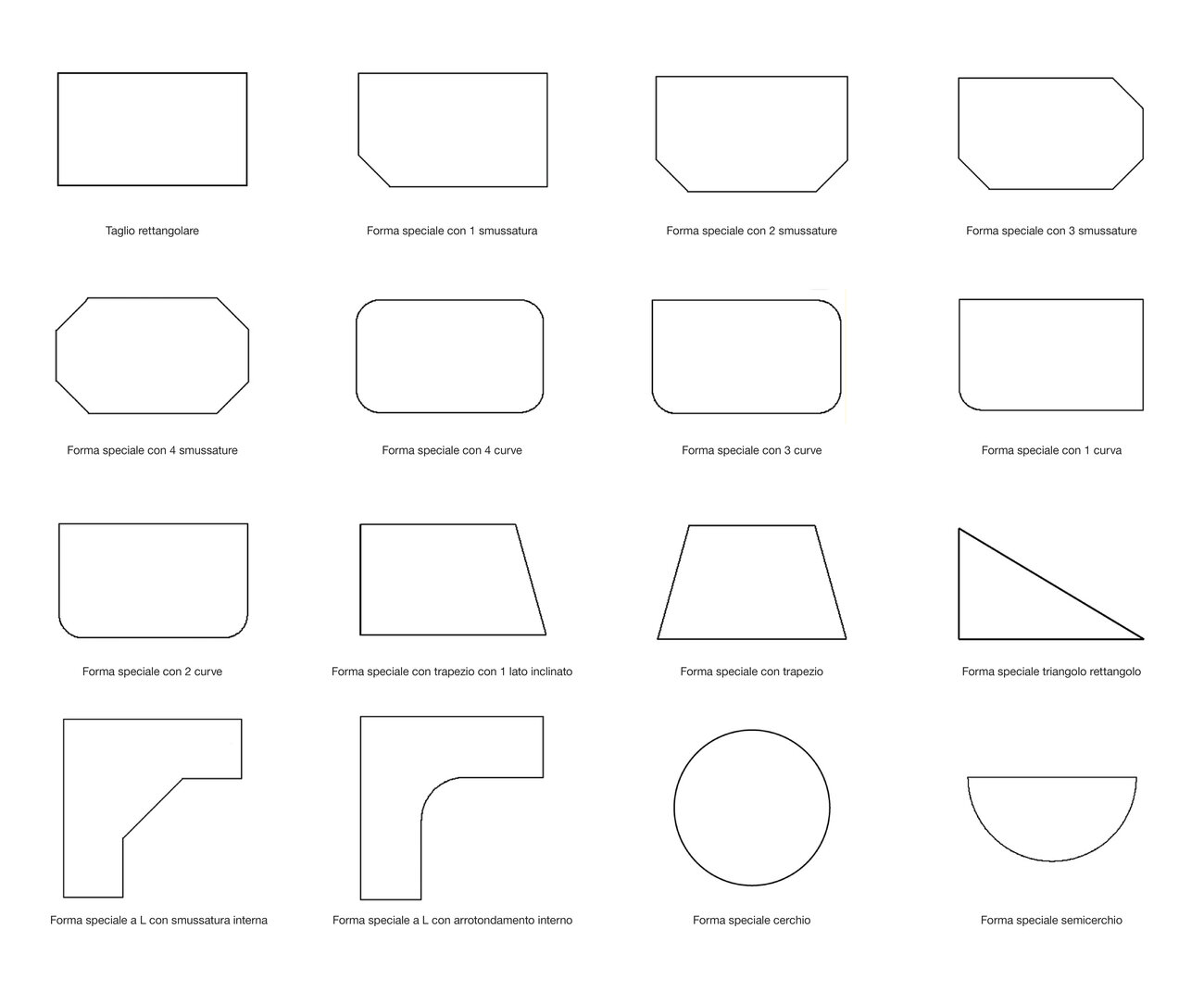 È inoltre possibile configurare, oltre ai tagli rettangolari, diverse forme speciali.