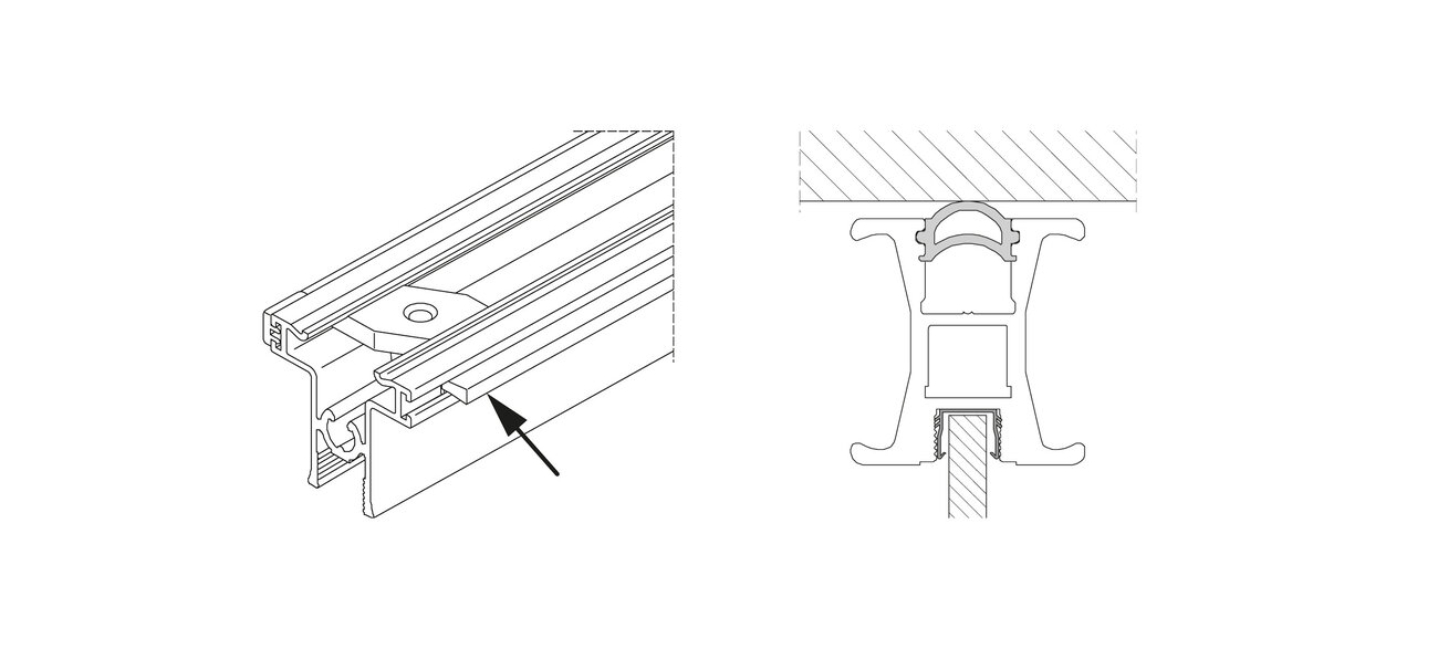 Solido 100 soddisfa praticamente ogni esigenza del cliente su misura, lasciando inoltre spazio a un tocco personale. Il sistema multifunzionale di porte scorrevoli sospese si caratterizza per la «riduzione all’essenziale». Guidata esclusivamente da una guida a soffitto, questa variante di sistema di porte scorrevoli crea effetti di grande impatto come divisorio o schermo visivo. Grazie a una tecnologia altamente sviluppata, questo sistema sospeso non ha nulla da invidiare al sistema di porte scorrevoli con binario a pavimento in termini di stabilità. Il funzionamento sicuro degli elementi della porta è garantito da un piccolo perno quasi invisibile sul pavimento.