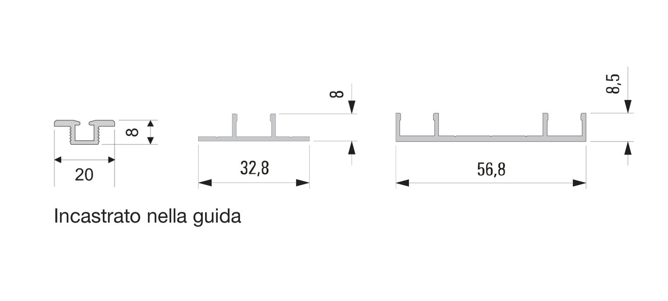 Tipo di guida a pavimento: a vista o incassata, con o senza profilo di copertura