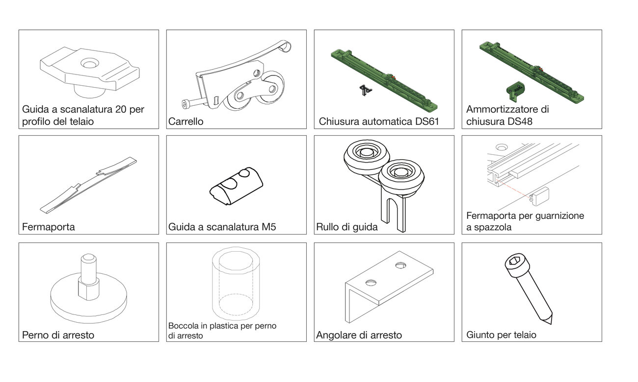 Binario di scorrimento a vista e incassato